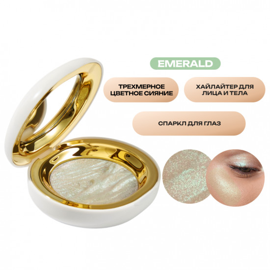 Уникальный цветной хайлайтер 2 в 1 создает трехмерный макияж, придает цветное сияние в определенных точках лица и тела, а также используется как спаркл для макияжа глаз, делая взгляд более глубоким и выразительным. Высокопигментированная текстура из мелкодисперсных светоотражающих частиц с жемчужным переливом легко набирается на кисть или на пальчик и хорошо растушевывается на коже, создавая эффект подсвечивания, что делает черты лица утонченными и позволяет выглядеть более свежо. Не осыпается. Подходит для профессионального или домашнего использования.